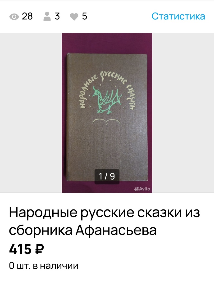 Предпоследняя продажа июня. Продалась книга, сборник русских народных сказки из сборника Афанасьева, художник Маврина Издательство Москва, Художественная литература, 1979. Состояние отличное, переплет твердый, прекрасные иллюстрации, более 100 сказок. Книга была заказана Авито доставкой , отправлена почтой России в Калининград. Посылка доставлена, ждёт покупателя , а он ее не забирает. В предпоследний день я написала сообщение , напомнив, что срок хранения заказа заканчивается. Покупатель откликнулся сразу, он был в командировке, книгу получить не мог и что делать в такой ситуации не знал. Пришлось мне писать в поддержку, объяснять ситуацию. Ответ пришел моментально , я переслала его покупателю. Он продлил срок хранения , отписался, поблагодарил, а сегодня забрал книгу. Самая долгая продажа!
