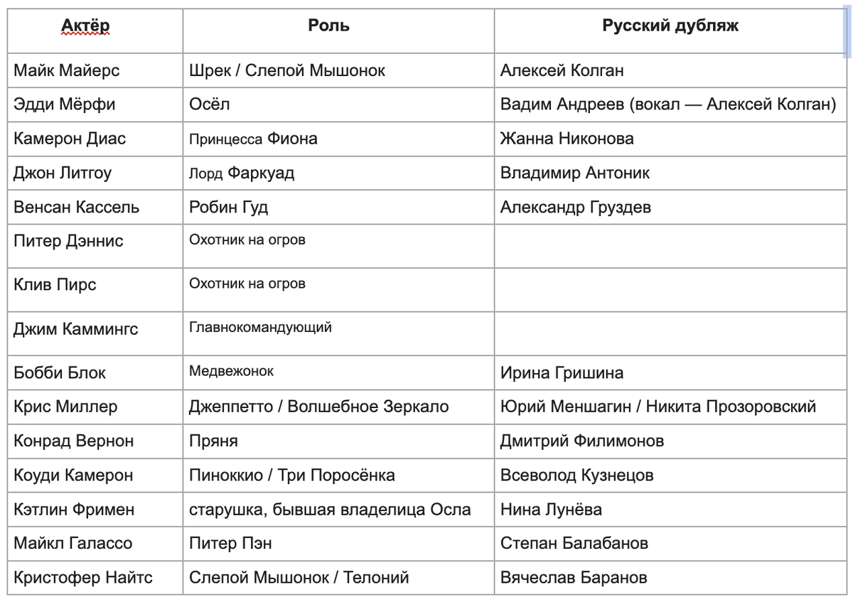 Русский дубляж «Шрека» был признан лучшим и демонстрировался на Каннском кинофестивале 2004 года в рамках премьеры мультипликационного фильма «Шрек 2».