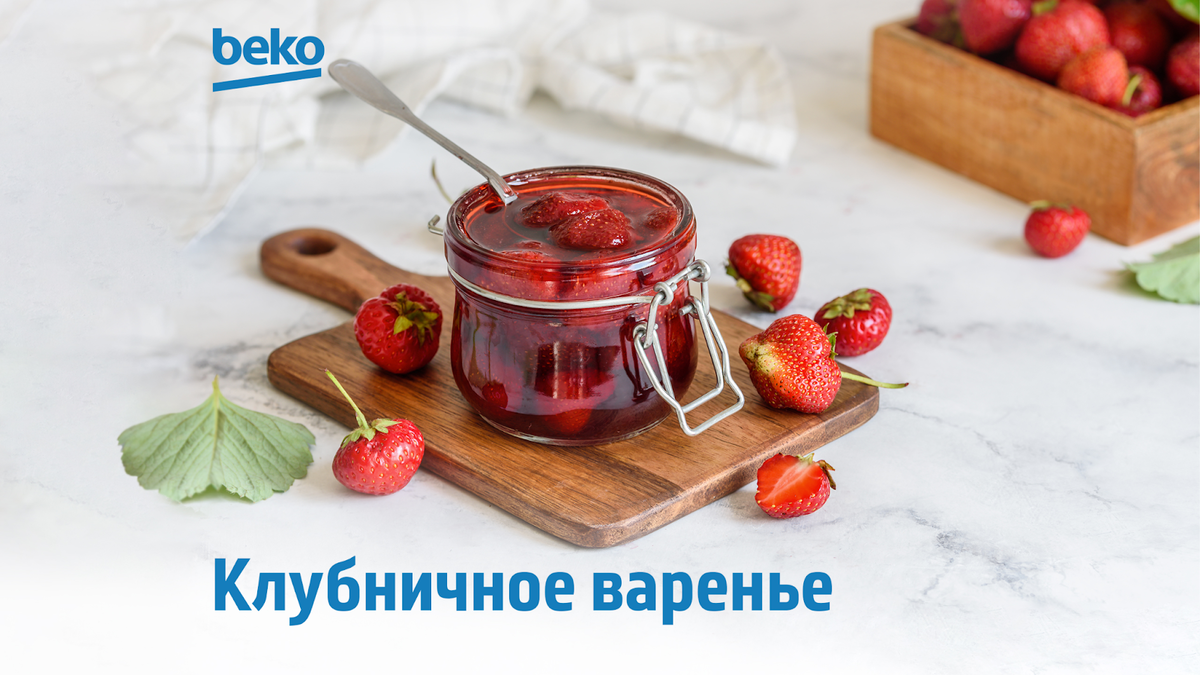 3. Прогрейте клубничную массу на среднем огне варочной панели Beko HINW64229S. После закипания проварите варенье 5 минут, следя за тем, чтобы пена не выплеснулась за края.