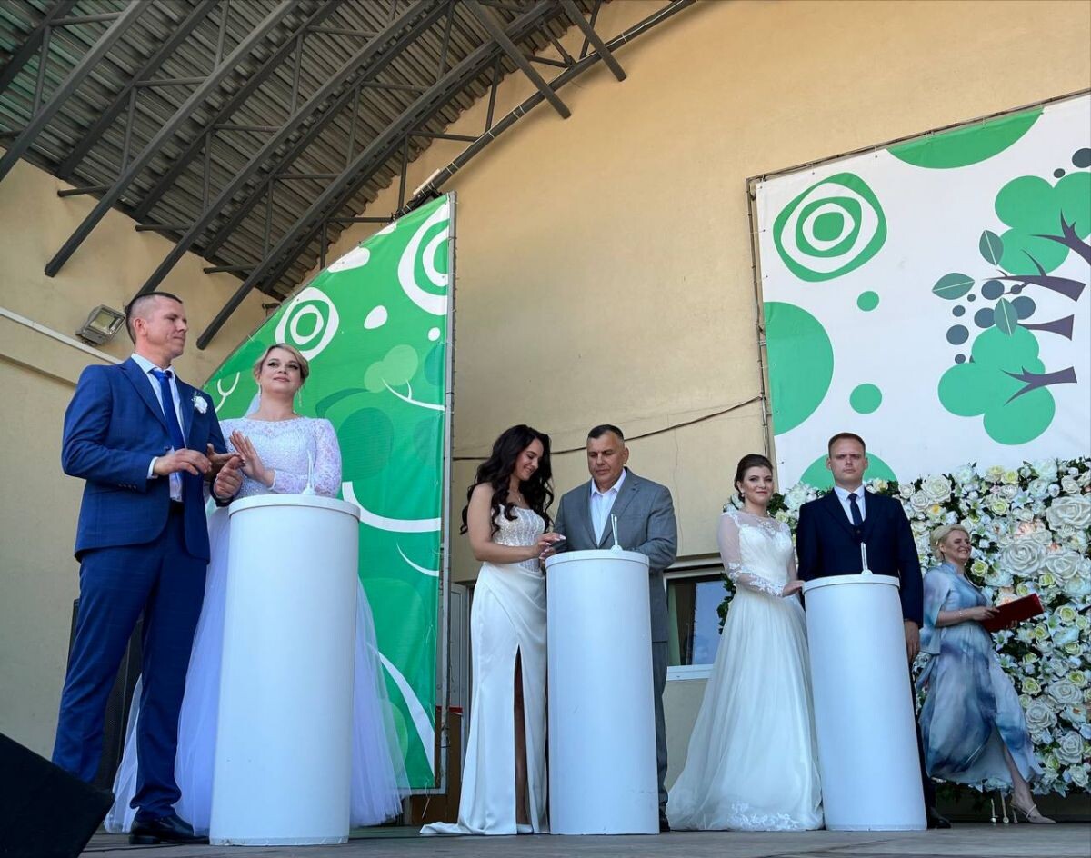 "Этот день особенный вдвойне": В Туле в День семьи, любви и верности одновременно поженились 6 пар