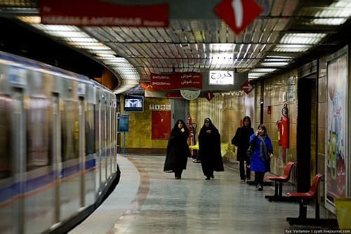 К сожалению, я не смог найти точной даты открытия Тегеранского метро. По одним данным метро открылось 21 февраля 2000 года, по другим - в 2001 году. Метро в Тегеране строили Китайцы. Метро мелкого заложения, есть открытые участки. Туристы часто рассказывают одну историю, что если спросить иранца, где метро, тот покажет на тротуар и скажет: "Там!", за все время мне никто на тратуар не показывал. Вообще по структуре метро в Тегеране очень напоминает метро в Лондоне. Похожие схемы, принцип организации станций. Снимать в метро почему-то нельзя. Я был в городе в 2010 году и ко мне постоянно подходили испуганные прохожие и говорили, что меня посадят за шпионаж, что сейчас набежит полиция и т.д. Пару раз подходили полицейские и пытались прогнать, один раз подошел сотрудник в штатском.