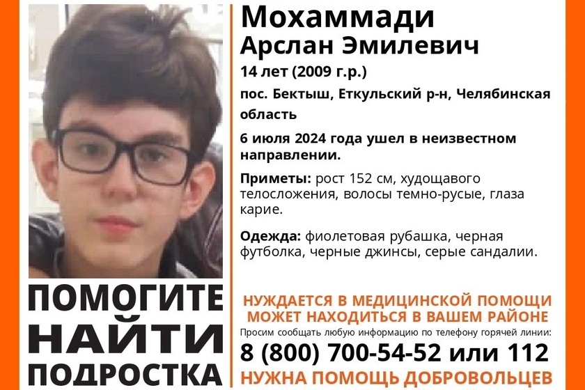 В поселке Бектыш Еткульского района Челябинской области продолжаются поиски 14-летнего Мохаммади Арслана. 6 июля мальчик приехал в лес вместе с родителями, которые собирали грибы. Он пропал из автомобиля, когда его отец отлучился на несколько минут. По сообщению "Лизы Алерт", подросток четвертые сутки находится в природной среде без еды, воды и без необходимых ему медикаментов. Полиция возбудила уголовное дело по статье "Убийство", чтобы расширить зону поисков. Мама Арслана нашла в себе силы обратиться за помощью. Ребенок ушел в лес с пустыми руками. Бутылка воды и планшет остались на сиденье. Единственная зацепка — в лесу обнаружено место, где он мог ночевать. Не удается выйти на след и кинологам с собаками. Ребенку с таким диагнозом тяжело выбраться даже из неглубокой ямы, а в этой местности много оврагов и болот. Мама пропавшего говорит, что знает, почему сын ушёл. Об этом она рассказала 74.ru — Он все время под тотальным контролем, ему хочется самостоятельности. Но он может травмир