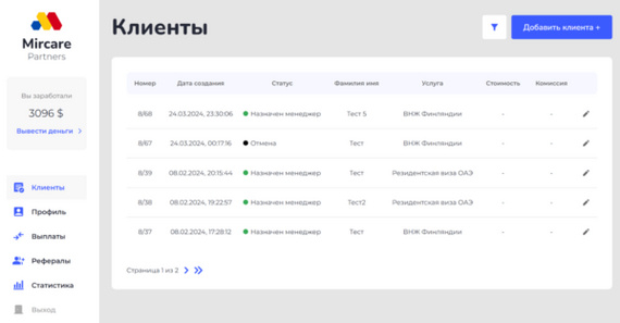 Чтобы каждый партнер мог буквально в несколько кликов добавить клиента, настроить реквизиты, в режиме реального времени видеть, на каком этапе находится каждая сделка — и, конечно, получать выплаты.