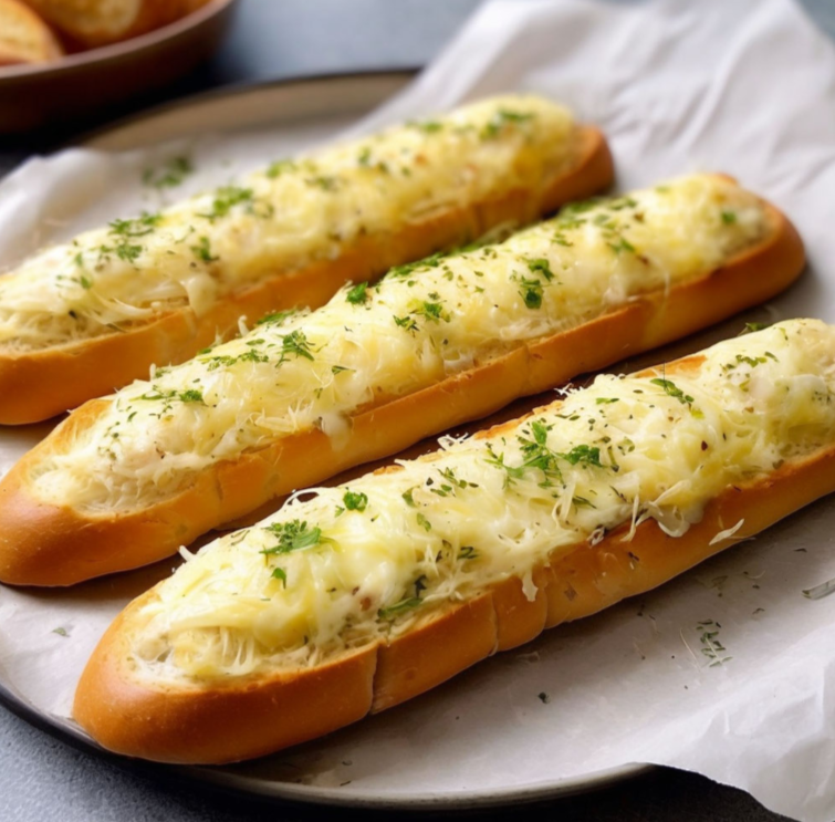 Достать чесночные багеты из духовки, порезать на порции и подавать. Приятного аппетита!