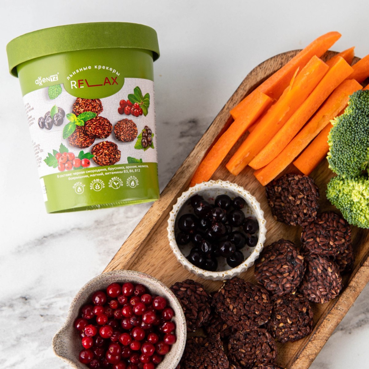 В отличие от обычного печенья, в составе которого рафинированный сахар, мука и трансжиры, крекеры Флакс-Релакс изготовлены из семян льна двух видов, сушеных ягод, натуральных экстрактов, а также магния и витаминов группы В.