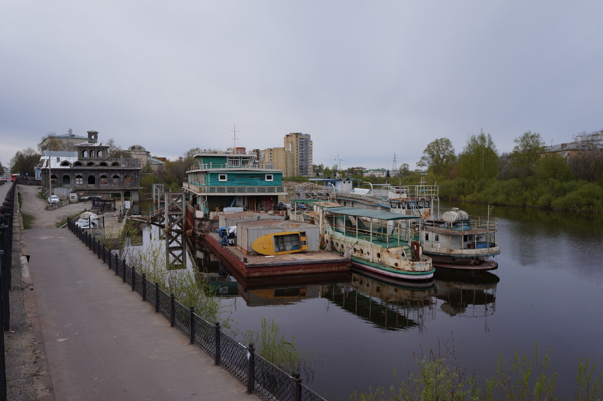 Ну а вот и то ради чего мы свернули сюда. Здание речного вокзала построили в 20-е годы, но как я понял, оно давно уже считалось старым зданием. Только карты показывают, что в городе именно здесь и находится речной вокзал. То есть куда перенесли новый вокзал решительно непонятно.