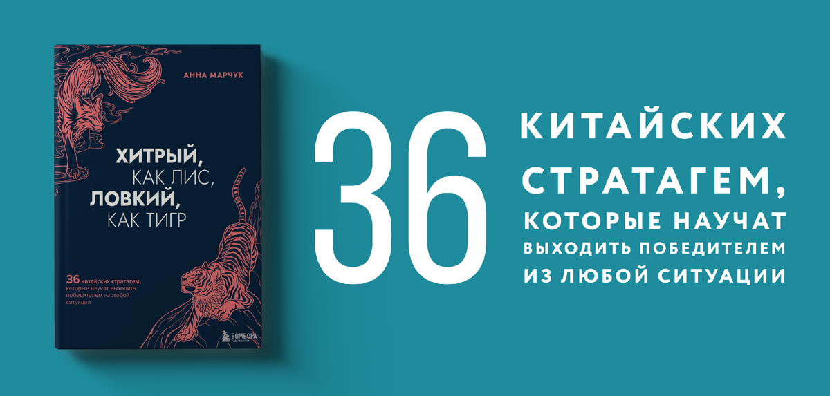 Продолжаем делать для вас полезный и освежающий фреш из наших книг. Сегодня это «Хитрый, как лис, ловкий, как тигр» Анны Марчук, — книга, в которой собраны 36 древнекитайских стратагем. Стратагемы — это военные хитрости, которым более трех тысяч лет. Но они и сейчас помогают выходить победителем из любой жизненной ситуации. Я, ведущий редактор отдела бизнес-литературы Евгения Карелина, расскажу о шести своих любимых стратагемах. Чем из перечисленного пользуетесь? Что показалось полезным? Как вы вообще относитесь к тактическим трюкам? А еще не забудьте поставить лайк и поделиться информацией о книге с друзьями! Заказать книгу можно здесь. Эта стратагема предлагает измотать противника своим бездействием. Например, молчать во время деловых переговоров, тем самым заставляя собеседника говорить самого. Чем активнее он высказывается, тем больше слабых мест демонстрирует и быстрее устает. Дождитесь, когда его энергия иссякнет и идите в атаку. Стратагема, которая рекомендует жертвовать чем-то