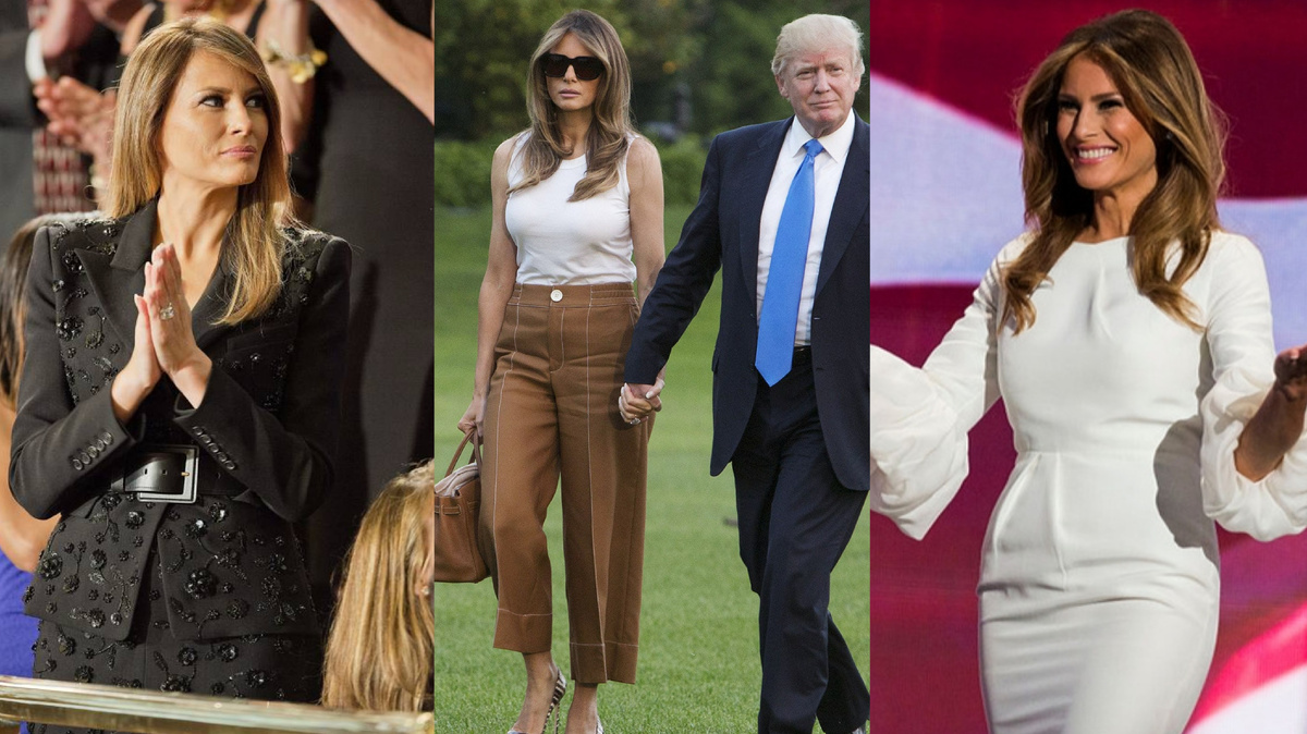 Мелания надела брюки Bally с широкими штанинами за 575 долларов и туфли Manolo Blahnik за 595 долларов, когда заселилась в Белый дом в 2017 году с сыном Бэрроном. Она также захватила с собой сумку Hermes Birkin, стоимость которой оценивается в 13 000 долларов.