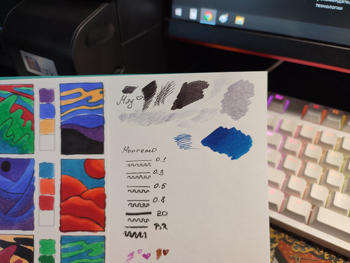 Как ведут себя тушь и распадающиеся чернила на разной бумаге