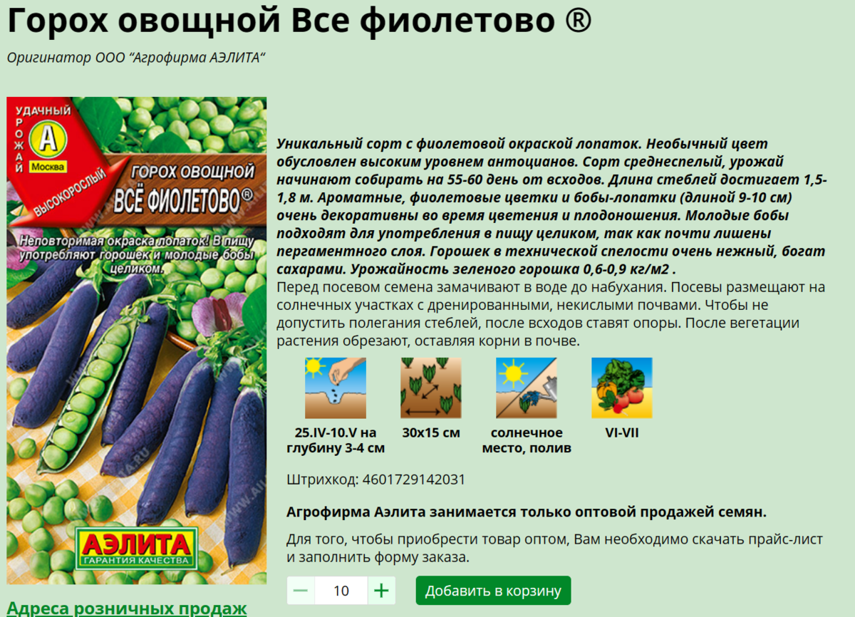 Я очень уважаю горох! Многое другое можно и не посадить, но вот горох всенепременно! В прошлом сезоне я высаживала для сравнения несколько сортов гороха. В этом году я решила выбрать высокорослые сорта. У меня пока нет сложившейся коллекции по ним. Из низкорослых любимцем у меня остается горох Грюнди. Он дает крупные бобы, много горошин и при перезревании остается таким же вкусным, а не мучнисто-деревянным как многие другие. Но Грюнди не высокий сорт. А задача найти рослые и вкусные. Этот сорт я высаживала в прошлом 2023г и сильно плевалась от его вкуса в свежем виде, однако позже оценила его в заготовках. Этот сорт в 2023г у меня не превышал метра - 70-80см получился с низкой подвязкой. Но поскольку на пакете заявлен высокий рост, то в этом году я высадила его в бочку со шпалерной сеткой. Он мгновенно дорос до 150см и так же быстро перерос и 150 и 170 см. Сорт действительно декоративен, с красивыми цветками. У меня ничем не поражался в этом сезоне. Из него можно делать красивую быстро