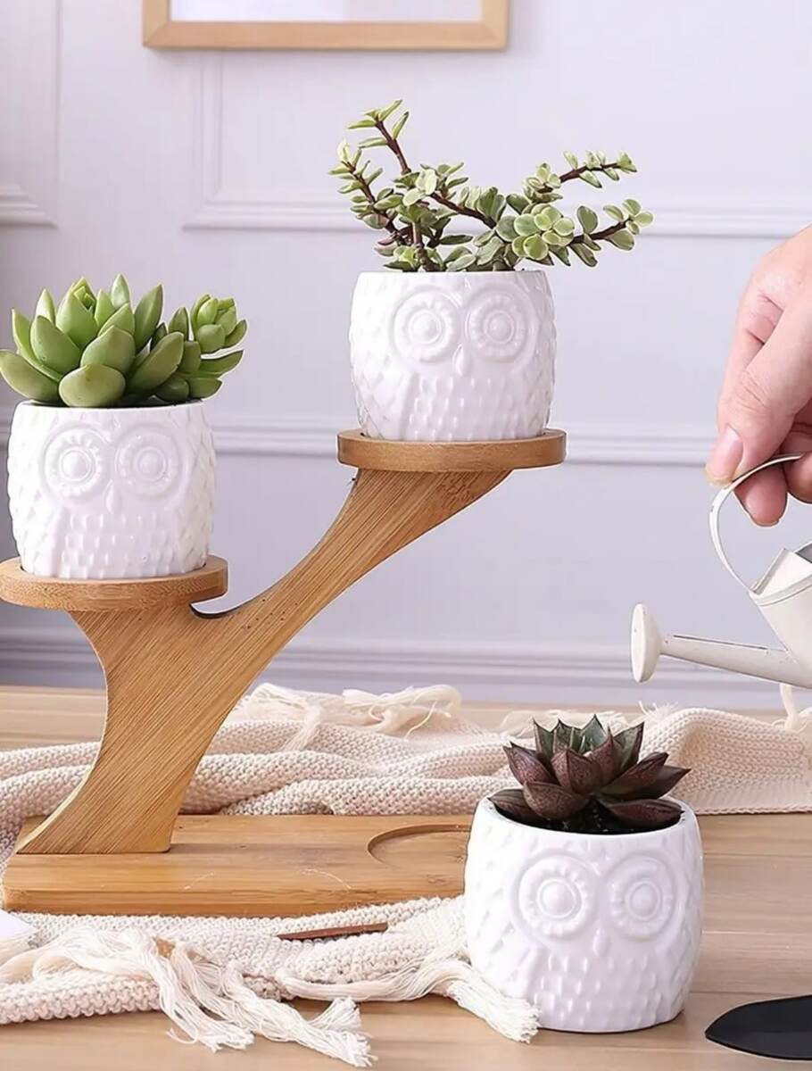 Хотите добавить шарма и стиля в свой интерьер? Тогда эти прекрасные керамические кашпо для суккулентов и кактусов Совы – именно то, что вам нужно! Они не только прекрасно подходят для небольших видов растений, но и станут настоящим украшением вашего дома. Кашпо выполнены из высококачественной керамики, что обеспечивает им прочность и долговечность. Благодаря дренажному отверстию, растения в них будут получать необходимое количество влаги, что поможет им расти здоровыми и красивыми. А деревянная подставка, покрытая лаком для защиты, добавляет элегантности и придаёт особый шарм этим кашпо. Сумма изделия 1 325 руб