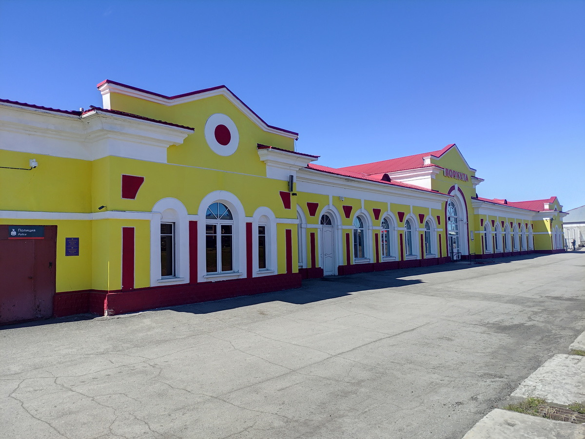 Всем привет! Наконец-то дошли руки начать писать цикл статей о Воркуте и ее окрестностях. Очень тяжело сидеть и после работы в 23:00 писать о жизни на севере, поддержите лайком, комментарием, дайте мотивации, спасибо! Итак, приехали мы днем на железнодорожный вокзал. Выглядит он ярко, вообще считаю его одним из самых ярких зданий Воркуты. Как и во многих городах к приезжим подскакивают таксисты и предлагают в тридорого довезти до места пребывания, но мы подготовились и скачали приложение Автолига и за 100 рублей были уже в отеле. Итак, выходим на улицу и понеслась. Видно, что хоть какой-то ремонт начали делать в городе. Первый дом уже отделали, надеюсь, дойдет и до всех. Смотрел последние ролики про Воркуту где-то 2020 года, там блогеры негативно относились к городу, мол, все здания обшарпанные, много заброшек и.т.д, но я увидел совсем другое, но уже в 2024 году. Сразу говорю, речь идет о центре города, сдвиги все-таки есть. Вот так сейчас выглядит улица Ленина. А вот памятник Ленину в