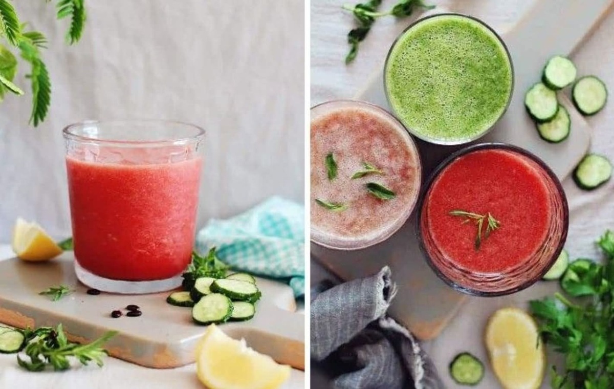 А если вы хотите напиток, которы вас освежит и охладит, то вам нужны соки, основу которых составляют овощи, в много воды, например, огурцы или зеленые листовые.
