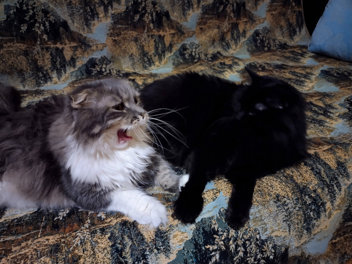 Ааааааааа!!!!!!! - Оооооооо!!!!!!! - Спасите-помогите-е-е-е!!! Люди добрые!!! Катастрофааааа! Я продрала глаза и скосила один из них на часы. Твою дивизию! Пять утра. Даже Баня и Буся еще спят. Откуда же тогда эти безумные вопли? Первой мыслью было, что опять нетрезвый Дюша явился под утро и врубил через динамики или фильм ужасов, или фильм катастрофу, или сам, поганка, подпевает какому-то хиту. Ибо его песни были сродни вот этим воплям. - Зая, что такое? Убивают кого? Грабят? - на кровати подскочил Сашка. - Омно-мно-мно! Голос папы Тимы. - Уууууу, урурур! Или папы Лёши! - Ну я точно не пойду в пять утра к парням, спрашивать, что случилось. Это неприлично и вообще. Может у них действительно кино включено. А тут мы припрёмся. - Действительно, - согласился Сашка..., - рановато для визитов. - Нет!!! - раздался истерический фальцет, - я этого не переживу! - Омно-мно, ну ладно, уговорили. Пойду у Васьки разузнаю. Что там приключилось. Всё равно не спит. Мяв! - Урурур! Погоди, Баня, я с тоб