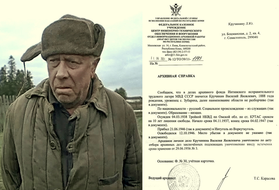 Лето 2024-го, в отличие от «холодного 1953-го», выдалось исключительно жарким: сейчас в Севастополе – под +40°С. Завтра выезжаем с сыном в Екатеринбург: он – к новому месту жизни и работы, я – дальше, в Ишим, на поиски потерянных членов Рода Кручининых. Чем-то неуловимо повторяется родовая история. В 1918 году мой овдовевший прадед Яков Алексеевич Кручинин перебрался из Гороховецкого уезда Владимирской губернии (как сейчас бы сказали, «на ПМЖ») в уездный город Ишим Тобольской губернии. Переехал он по приглашению своего старшего сына Василия, который уже крепко в Ишиме осел. Он имел свой дом в богатом, хлебном Ишиме, работу в маслобойной артели, женился на местной барышне, Матрёне Михайловне, воспитывал сына Александра. И теперь дал пристанище своему отцу, младшим братьям и сёстрам из голодной деревни.