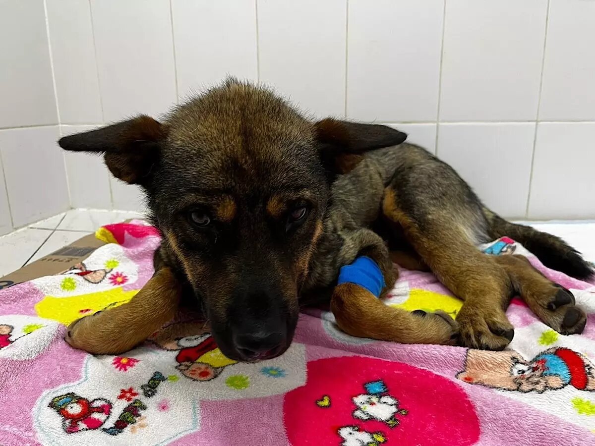 Наталья не растерялась, взяла Малыша и отвезла в ветклинику. В течение месяца врачи выхаживали собаку: наложили фиксатор, лечили разрывы, которые гноились. Добрые люди помогали Наталье финансово, и самочувствие питомца значительно улучшилось.