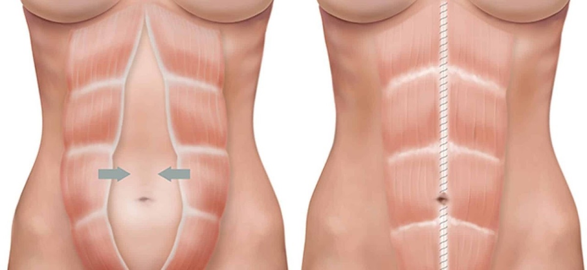 Диастаз — это состояние, при котором происходит увеличение расстояния между прямыми мышцами живота. В результате он увеличивается в объёме и приобретает округлый вид даже у худощавых людей. Причины развития диастаза: ● у женщин — обычно формируется после беременности. Растущая матка значительно увеличивает внутрибрюшное давление и растягивает мышцы живота. ● у пациентов обоих полов — может сформироваться на фоне повышения внутрибрюшного давления, например, при наличии избыточных жировых отложений. Симптомы диастаза: ● на ранних стадиях развития единственным признаком служит появление в области белой линии валикообразного выпячивания. ● по мере прогрессирования патологии появляются физические признаки: дискомфорт в верхней части живота, боли в околопупочной области, приступы тошноты после приёма пищи. Лечение: ● на первых стадиях выполняют комплексы физических упражнений. ● при широком диастазе восстановить строение брюшной стенки и белой линии получится только с помощью операции. Ещё о