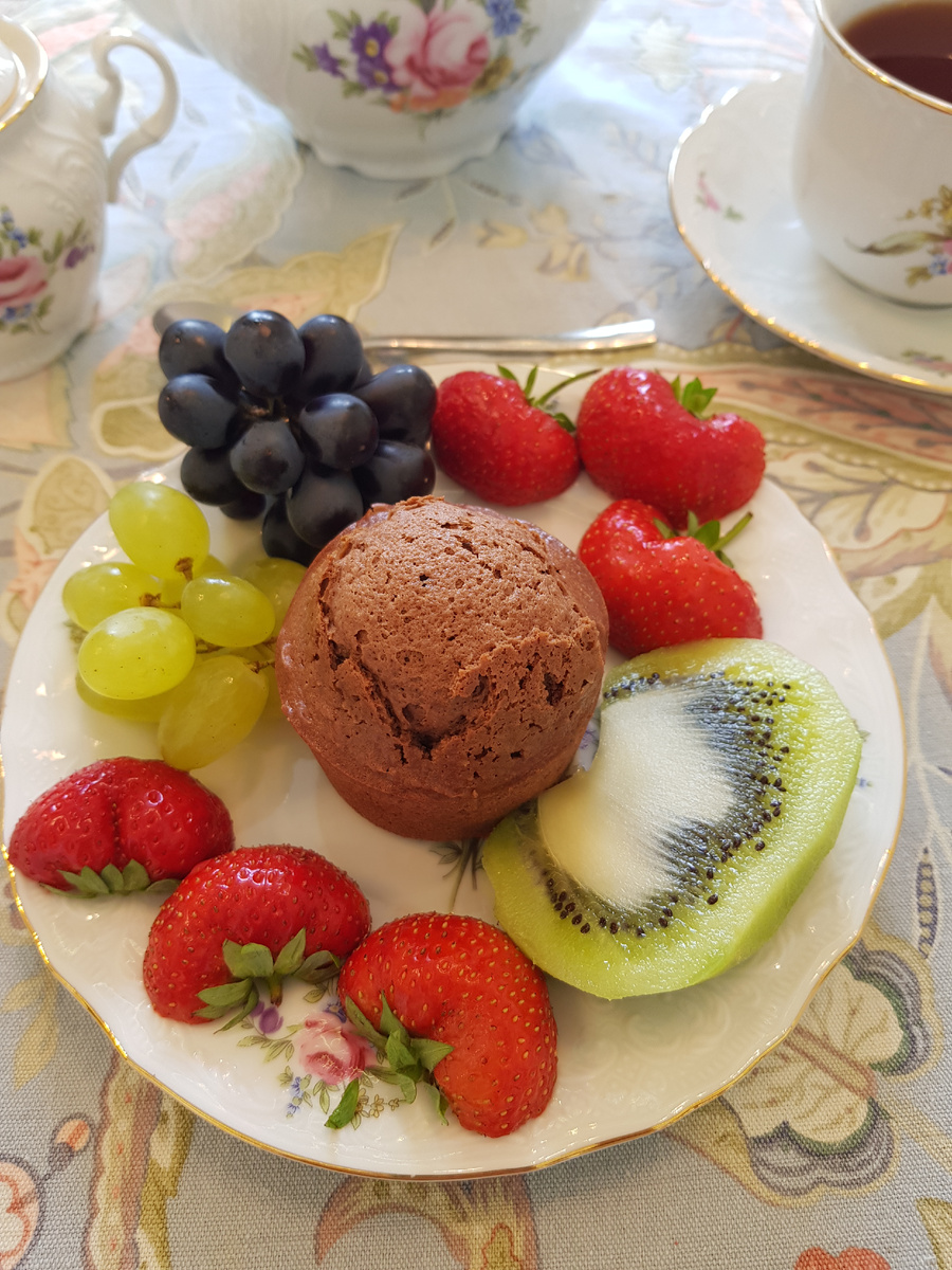 Доброе утро, дорогие друзья! Сегодня я приглашаю вас на утренний брусничный чай с шоколадными кексами, клубникой, виноградом и киви "Баттерфляй". Для приготовления нам понадобятся: 400 грамм сметаны жирностью 40%, 250 грамм сахара, 50 грамм какао ( я специально поставила какао в коробке, что бы можно было на него ориентироваться, это какао без сахара фабрики "красный октябрь"), 5 яйца, 1/2 чайной ложки соды, 320 грамм муки. Дополнительно нам понадобятся: клубника, виноград, киви ( Мне вчера попалось киви сорта "Баттерфляй" при разрезе на 2 половинки у него красивый рисунок как крылья бабочки) Для чая нам понадобятся: 2 столовые ложки чёрного чая, 2 столовые ложки сушёной брусники, 2 ломтика лимона. Приготовление: Сметану растопить в кастрюле. Добавить сахар. Добавить какао. Все перемешать и прогреть до полного растворения сахара и какао. Перелить горячую смесь в ёмкость и дать остыть. Добавить 4 яйца и перемешать. Просеять муку и добавить соду. Перемешать тесто, что бы не осталось