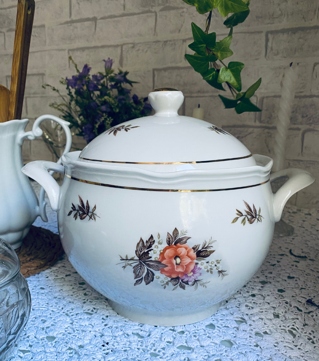 Гулять - так гулять, сказала я себе в тот день, когда забирала ненужную посуду. Для тех, кто пропустил начало - знакомый решил избавиться от ненужной посуды. Бери, мол, что хочешь, через час грузчики все на свалку увезут. Когда три пакета весело позвякивали в коридоре, я уже смекнула, что, наверно, надо было где-то посередине остановиться. Но кнопки «стоп» не обнаружилось, друзья мои😁Лучше один раз забрать, и потом разбираться, чем жалеть о старых посудах, которые на мусорку выкинули. Сегодня продолжаем разбор, идем смотреть) Супница досталась абсолютно новая. Как и прочие представители семейства терринов, коренастенькая и симпатичная своей пузатостью. Приехала из краснодарского завода «Чайка». Логично, что и на клейме эта птица изображена. Я, подхваченная модным веянием выращивать всякое красивое, уже одной ранее обзавелась. Теперь будет дуэт. Хочу вырастить теперь что-то съедобное. Базилик, может. Я уже все замеры провела, среднестатистический горшок в нее прекрасно входит и вых