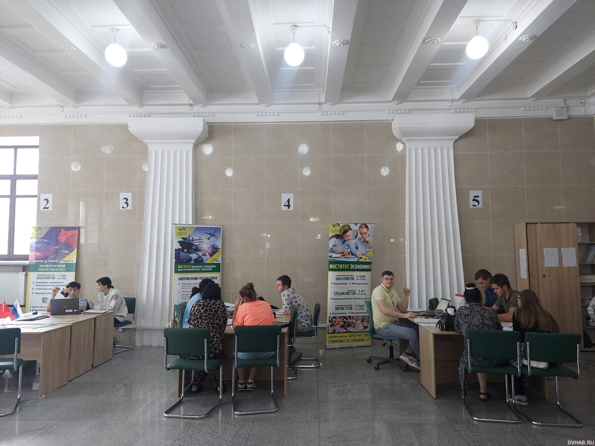 С утра до вечера в главном корпусе ДВГУПС вчерашние школьники и их родители не устают общаться с представителями приемной комиссии вуза. Интересует всё: от количества бюджетных мест на разные специальности до условий обучения и проживания в общежитиях. - Бюджетных мест в нашем вузе традиционно много на самые разные специальности - в этом году их 1244. Из них 1138 мест на очное обучение в головном вузе в Хабаровске. 47 мест выделено на заочное обучение, - рассказывает директор Единого сервисного центра, ответственный секретарь приемной комиссии ДВГУПС Елена Химич. По количеству бюджетных мест в лидерах такие направления подготовки, как "Подвижной состав железных дорог", "Эксплуатация железных дорог", "Технология транспортных процессов", "Строительство", "Строительство железных дорог, мостов и транспортных тоннелей", "Электроэнергетика и электротехника". В последнее время в регионе чувствуется острая нехватка специалистов в области сервиса и туризма (после снятия всех ковидных ограничени