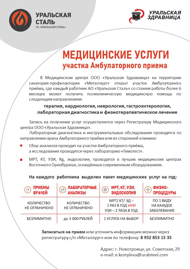 Медицинская помощь для сотрудников комбината "Уральская Сталь"