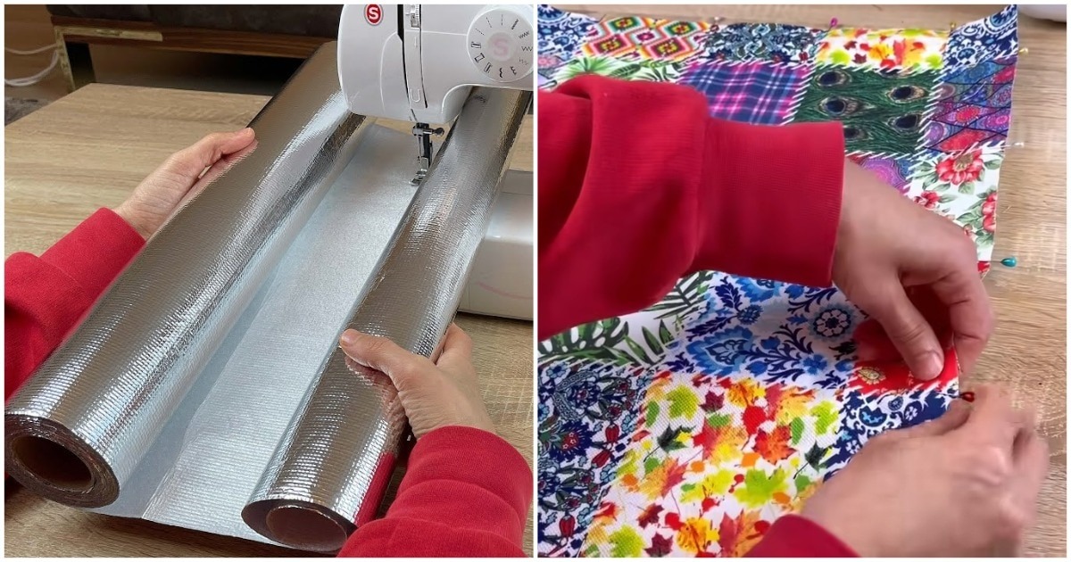 Только взгляните, какую красоту можно сшить, если взять рулон недорогой теплоизоляции (фольгированный утеплитель) и кусок ткани. На выходе у вас получится вещь, необходимая в каждом доме!