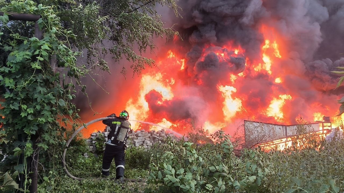Для тушения пожара на складе по переработке вторсырья увеличили количество специалистов и единиц техники. Охваченная огнем зона выросла до 1200 квадратных метров. Фото: МЧС России Горючие материалы, жаркая и сухая погода усложняют тушение пожара на складе по переработке вторсырья на территории Краснооктябрьского района Волгограда. МЧС России сообщает, что за последний час площадь пожара увеличилась до 1200 квадратных метров. Пламя перекинулось на одноэтажное железобетонное здание. Ранее охваченная огнем зона выросла вдвое и достигла 1000 квадратных метров. Для тушения огня состав специалистов увеличили до более 70 человек. На месте также работают 24 единицы техники. Смотрим «Вести. Волгоград»: smotrim.ru/Volgograd Подписывайтесь на наши страницы в соцсетях: Telegram, ВКонтакте, Одноклассники, Дзен