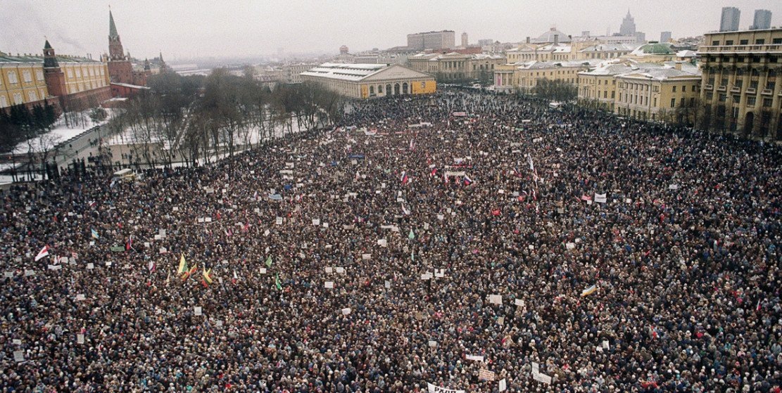 В 1991-м году, как бы само собой оказалось, что результатами всенароднейшего референдума про сохранение СССР, - только подтереться. Что происходит? Игрушечный путч, трое задавленных героев, тут же неслабая массовка в столицах, протесты возмущённых граждан. Не на местах (там-то как работали, так и продолжали), а в столицах. В столицах! И всё: мы уже на другом румбе в пути к общему счастью в Дружной Семье Демократических Народов.