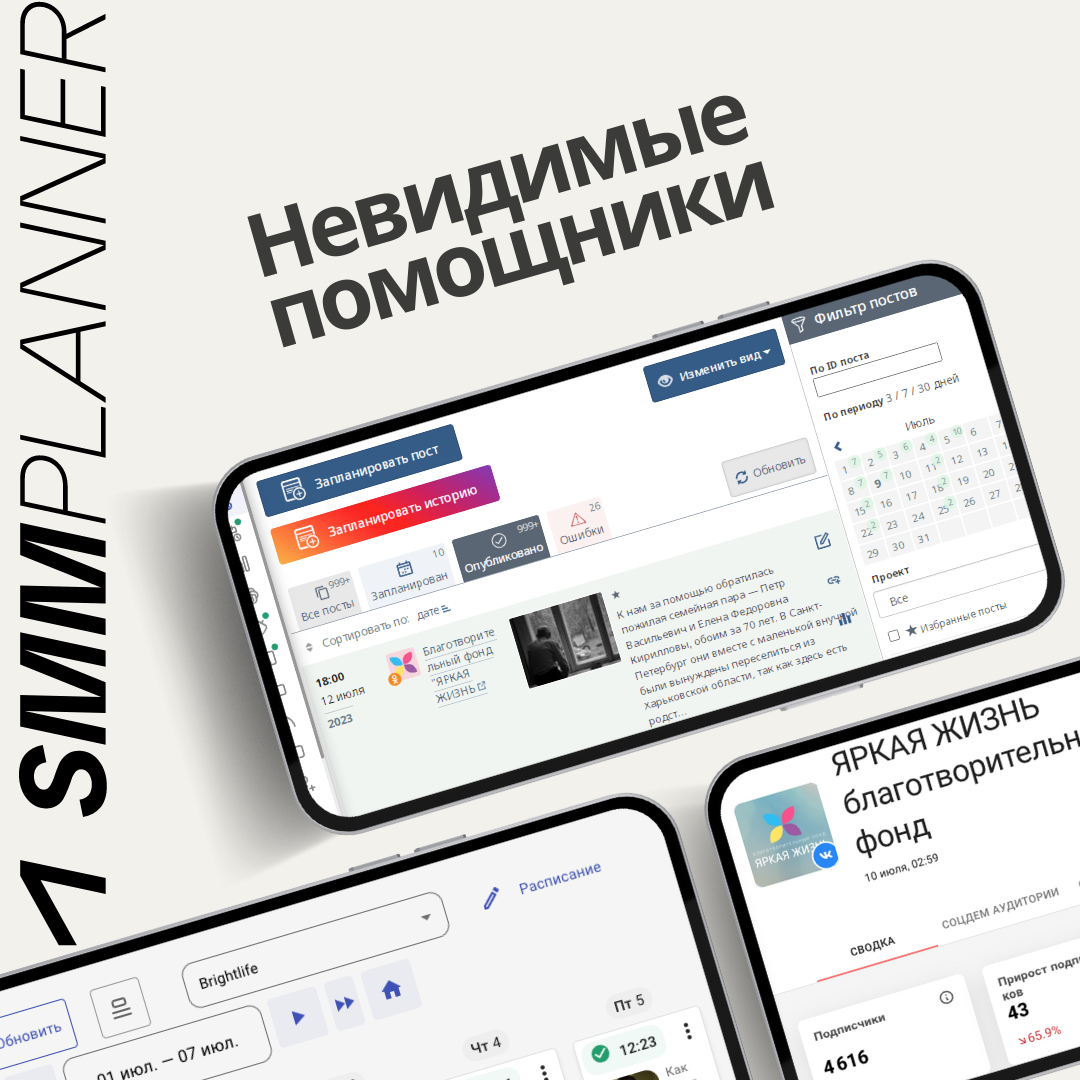 Помогать можно по-разному: деньгами, делами, вещами и даже нематериальной поддержкой, которая значительно облегчает нашу работу. Мы рады сообщить, что сервис SMMplanner любезно предоставил нашему фонду «Яркая жизнь» возможность бесплатно пользоваться их услугами. Это огромная помощь для нас, и мы искренне благодарим их за поддержку!