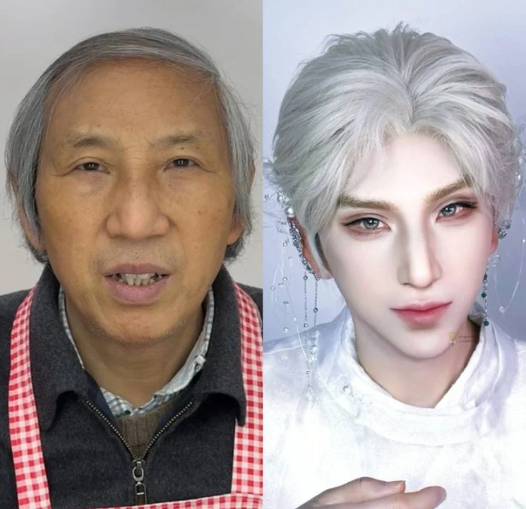 Никогда не верьте азиатам на видео. Краситься там умеют все, да так, что нам и не снилось. В данном случае давала парики и помощь в макияже любимому дедушке внучка. Или заставила девушку, чтобы получать больше заказов, как визажистка, тут не разберешь. Девушка под ником sakuralusi в китайской соцсети Douyin регулярно делает своему дедуле макияж, на котором он выглядит как 25-летний герой манхвы или исторической дорамы. Девушки-анимешницы пишут ему влюбленные комментарии, потому что он прекраснее многих их сверстников. Большинство людей даже отказываются верить, что это один и тот же человек. Но девушка специально показывает видео и сравнивает фото. Она думает, что это поможет ей показать мастрество и повысить ценник за услуги. Дедушка то ли внимание молодых анимешник любит, то ли внучку, и на все готов, даже быть вызывающе привлекающей внимание «крашеной» моделью. Среди старшего поколения китайцев пользоваться косметикой – не мужской поступок, позорный. Но 25-летний деда готов стерпеть