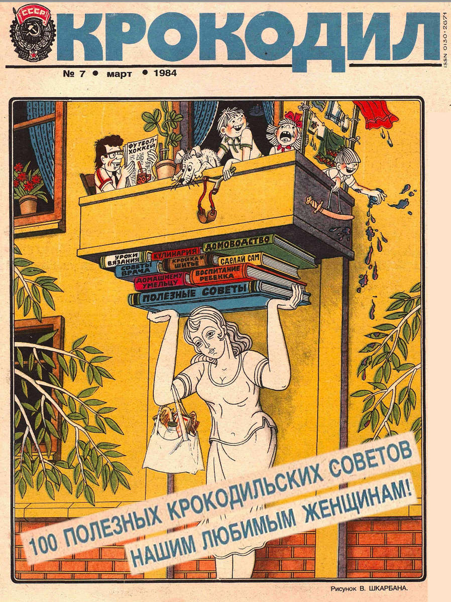 Мартовский выпуск в знаменитом советском журнале «Крокодил» всегда был посвящен международному женскому дню. 1984 год не стал исключением. Однако на этот раз авторы издания поднапряглись и выдали не 10, не 20, а аж 100 советов леди на все случаи жизни. В основном они касались отношений. Список составлял полностью мужской коллектив, ни одной женской фамилии среди авторов нет.