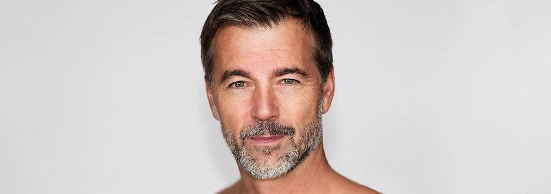 У женщин как правило уровень коллагена постепенно падает. У мужчин же до 45 лет кожа полна коллагеном, а тестостерон поддерживает красивые мужские черты лица. После 45 лет уровень коллагена в дерме и тестостерона начинает падать, мужчина подвергается быстрым изменениям во внешности. Кожа теряет свой тонус, становится дряблой, появляются глубокие морщины и заломы. SMAS слой, подкожно-жировая клетчатка истончается. Начинают “провисать” и опускаться под гравитационным птозом углы рта, веки, щеки. Овал лица округляется, уходят точеные скулы и углы челюсти.