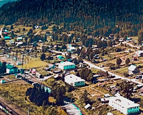 На фото станция Теба. Между двух двух этажных домов нет ещё одного двух этажного дома, он сгорел, когда Валентина уехала из него.