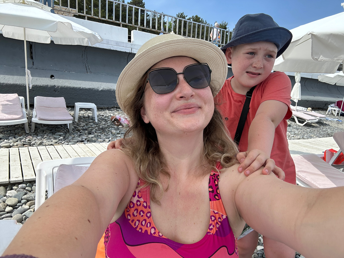На других пляжах есть проблема с водорослями и плитами. Сколько бы мы ни искали пляж поближе к квартире, всё равно возвращаемся на «Маяк».