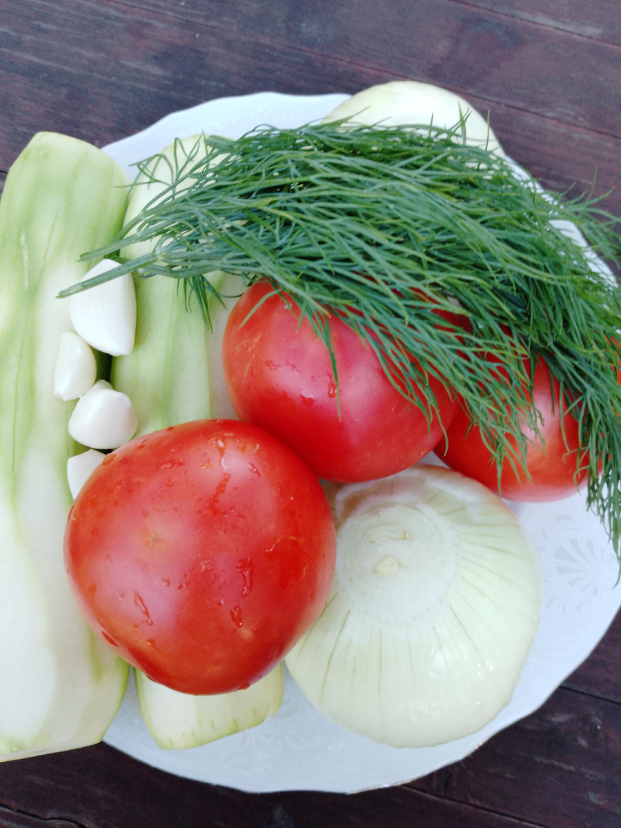 Простое, яркое и очень вкусное блюдо. Овощи моем и чистим. Кабачки, лук и помидоры режем средним кубиком. Чеснок мелко режем или натираем на терке. Зелень, у меня сегодня укроп, мелко режем, она нам понадобится в конце. Итак, на растительном масле обжариваем репчатый лук. Как только лук станет прозрачным и начнет золотится, добавляем кабачки. Как только кабачки дали сок добавляем помидоры. Минут через 5-7 добавляем консервированную в томатном соусе фасоль. Сразу после фасоли добавляем чеснок, солим, перчим по вкусу. Готовим минут 5-7. Также можно добавить сухих трав например, прованских. Готовое блюдо посыпаем свежей зеленью. Это вкусное, ароматное овощное рагу никого не оставит равнодушным. Приятного аппетита!