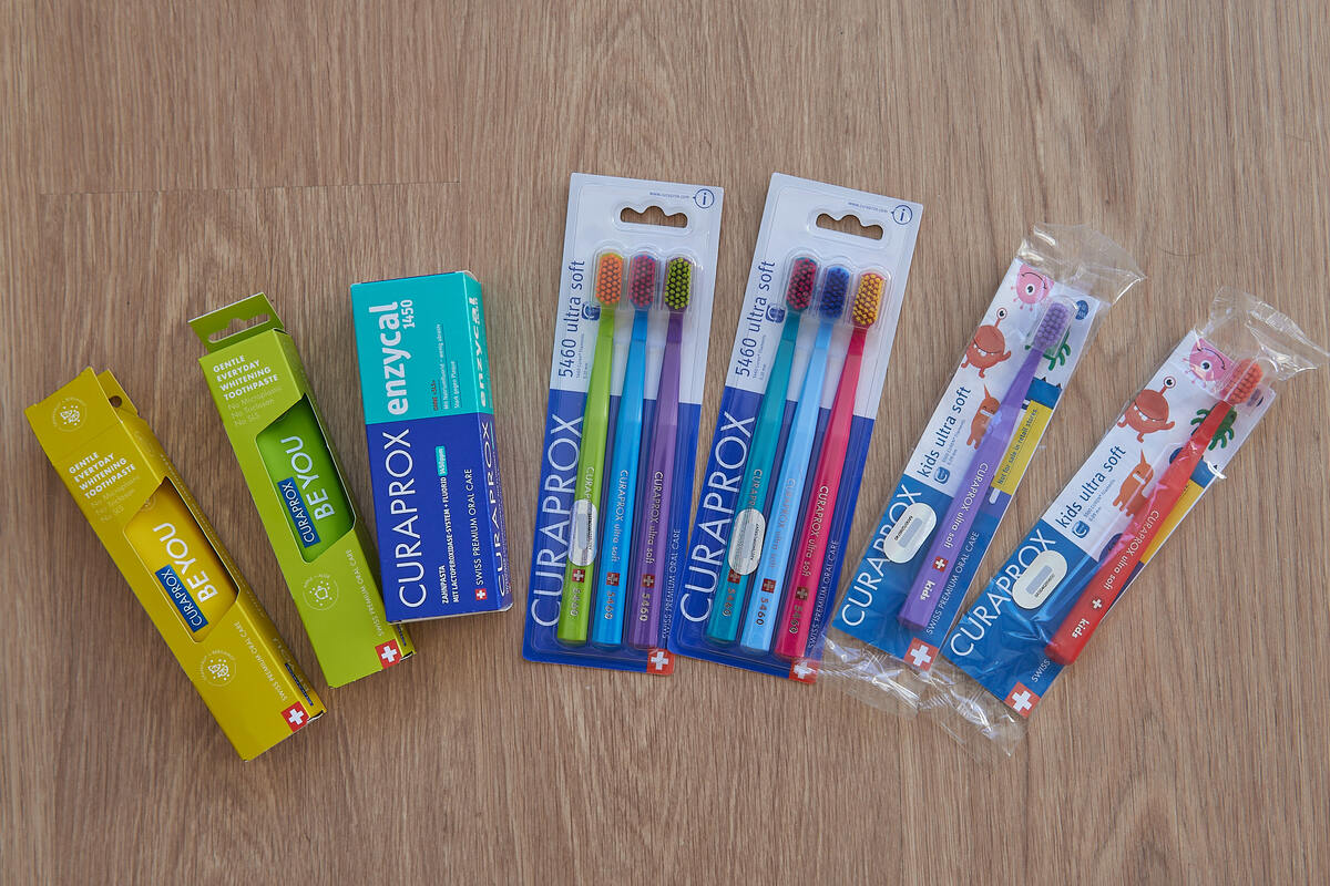 - Зубные щетки марки Curaprox. Это лучшее, что есть на рынке. У них запатентованная технология (каждая ворсинка запаяна и не вредит деснам, сделана из специального полиэстерового волокна). Аналоги из пункта выше не дотягивают до такого качества.