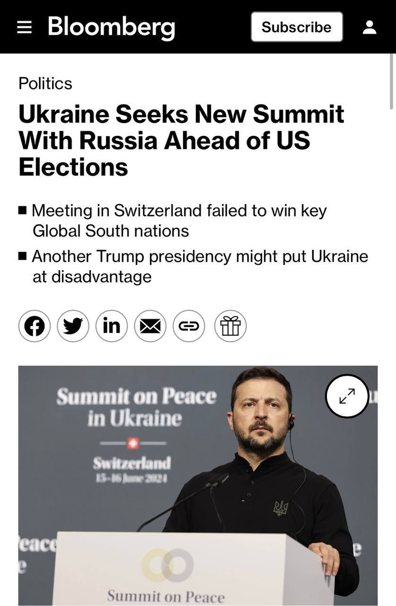 Украина планирует созвать второй мирный саммит с участием России до выборов в США в ноябре
