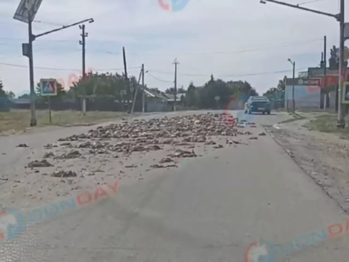 В поселке Маркин Октябрьского района Ростовской области произошло дорожно-транспортное происшествие 10 июля. Грузовик, перевозивший мертвых птиц на утилизацию, потерял часть груза прямо на оживленной дороге. Водитель, двигавшийся на высокой скорости, не снизил скорость перед искусственной неровностью, известной как «лежачий полицейский». Тяжелая машина с трудом преодолела препятствие, в результате чего из-за резкого маневра груз с зловонными тушами птиц оказался на проезжей части. Инцидент, произошедший без ведома водителя, который продолжил путь, оставил следы разлагающихся птиц вдоль дороги. От воздействия зловония жители прилегающих территорий столкнулись с трудностями при выходе из домов, а проезжающие мимо водители вынуждены были закрывать окна и отключать кондиционеры. Спустя некоторое время после инцидента на место прибыл трактор, который собрал тушки птиц и переместил их в кузов другого грузовика для дальнейшей утилизации. Сотрудники МЧС оперативно промыли участок дороги, чтобы