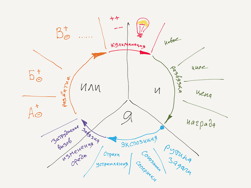 Самое удивительное, что по этой схеме легко собирать истории бизнес-решений, что мы регулярно осуществляем на мастерских сторителлинга, когда сотрудники разных компаний упаковывают свои проекты в формат историй.