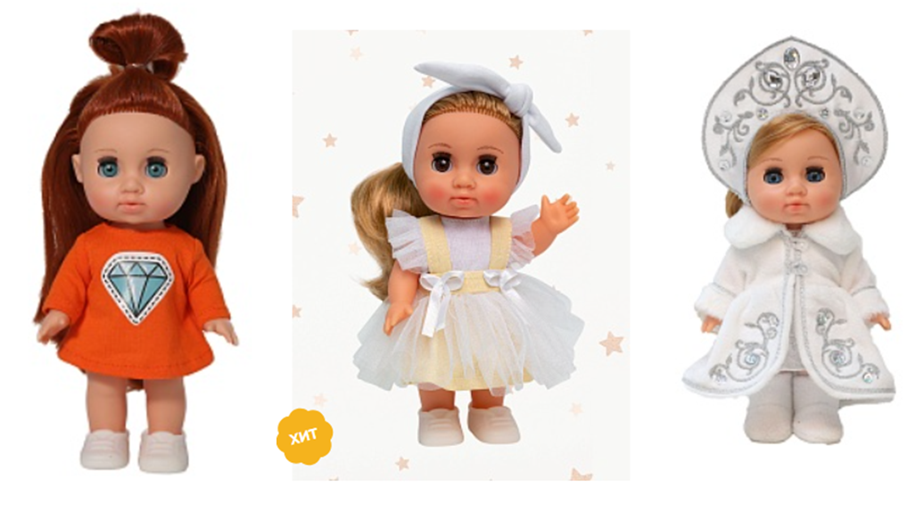 Прошлым летом была в Кирове. и вот какое допустила упущение - не побывала в фирменном магазине фабрики "Весна". Очень сожалею. Сегодня как раз разглядываю кукол этой фабрики. Думаю какая бы мне из них понравилась больше. Итак, что там есть в каталоге. И ЭТО НЕ РЕКЛАМА!!! Просто делюсь полученными знаниями. Все потому что увлекаюсь куклами и даже веду свою группу в ВК: - DOLLs with love - МНЕ ИНТЕРЕСНО Винил. Глаза закрываются, ресницы наклеены. Особенность: из коробочки можно сложить картонную кроватку для куколки. Есть глаза и волосы разных цветов. Множество разных образов в разных нарядах. На данный момент на сайте в каталоге есть 12 видов. Винил. На сайте аж 39 видов в разных образах и одеждах. Глаза закрываются, ресницы наклеены. Много куколок с игрушками и аксессуарами. Красивые одежки. Винил, 62 вида в каталоге - самая многочисленная категория. Слегка смахивает на Паолу и близка к ней по размерам. Глаза как и у предыдущих моделей - закрываются и бывают разных цветов. У нее навер