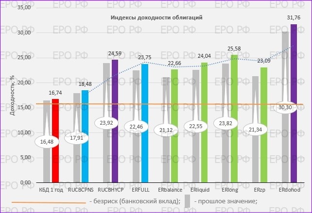 Плановый обзор долгового рынка и обновленных портфелей. ✅ Максимальная процентная ставка по вкладам за 3-ю декаду июня, публикуемая Банокм России превысила ключевую ставку, 16,088% (ранее 15,99%); ✅ Индекс ОФЗ с дюрацией 1 год (КБД 1 год на графике👆) существенно не изменился. КБД публикуется на сайте Мосбиржи; ✅ Индекс корпоративных облигаций RUCBCPNS (публикуется на сайте Мосбиржи) демонстрирует незначительное колебание, что странно, должно быть значительное; ✅ Индекс высокодоходных облигаций RUCBHYCP (публикуется на сайте Мосбиржи) тоже колеблется в диапазоне 1% к прошлой неделе; ✅ Индекс полной доходности ЕРО РФ ERFULL прибавил более процента, вот это уже реальная цифра, судя по текущему рынку. В Реестр вошло 109 облигации против 123 ранее, общий порог YTM для ЕРО РФ увеличен на процент; ✅ Индекс ERbalance портфеля СБАЛАНСИРОВАННЫЙ - рост на 1,54%. ✅ Доходность ликвидной части Реестра ERliquid - так же прибавил более процента. ✅ Индекс портфеля ДОЛГОСРОЧНЫЙ ERlong - аналогичная дин