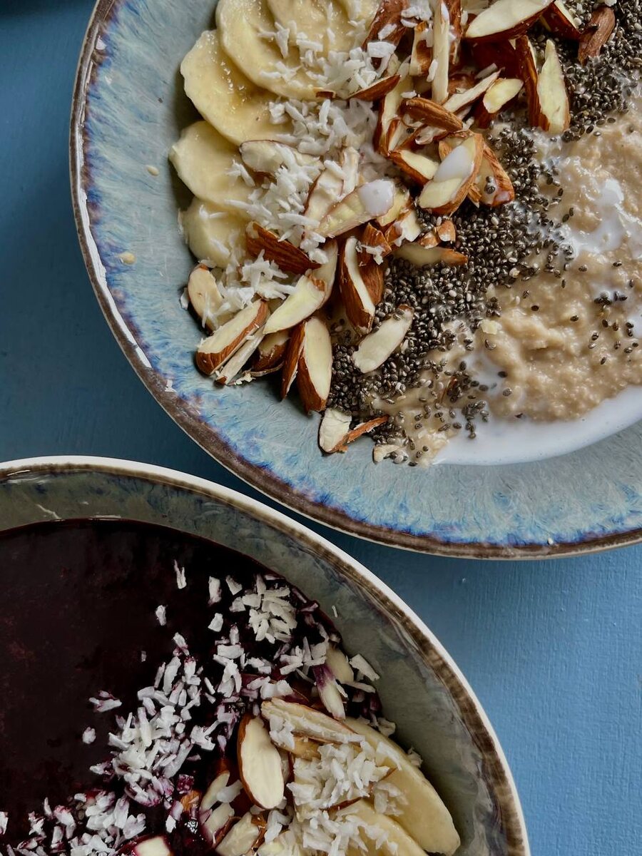 #завтрак (Варианты заправки без ягод) 1-ый вариант полить кокосовыми сливками 2-ой вариант залить перемолотой замороженной черникой 🫐 💧 стакан теплой воды за 30 мин до еды 🩵 можно в детокс