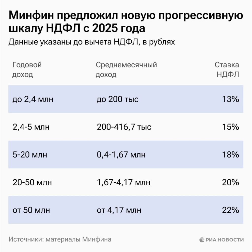 10 июля ГД единогласно одобрила, а Совет Федерации оперативно утвердил крупнейшее повышение налогов в России за последние четверть века - с бизнеса и граждан предполагается собрать 16.8 трлн(!) рублей за ближайшие шесть лет. Все это подается как решительный шаг к большей "социальной справедливости", ведь вводится прогрессивная шкала НДФЛ, когда богатые якобы будут платить больше: Но все это выглядит столь милым сердцу обывателя "раскулачиванием" только на бумаге - никто из многочисленных российских миллионеров и миллиардеров, разумеется, зарплату в десятках миллионов не получает. Так что все эти цифры про 22% НДФЛ при з/п в 50 млн - фикция чистой воды. Если три счастливчика с таким окладом наберется на всю страну, то хорошо, т.к. в реальности все эти владельцы газет и пароходов получают свои колоссальные прибыли за счет процентов с финансовых активов. А этот вид дохода (сюрприз-сюрприз) повышение налогов не коснулось совершенно. Все это, к слову, прекрасно понимают и в Минфине - там че