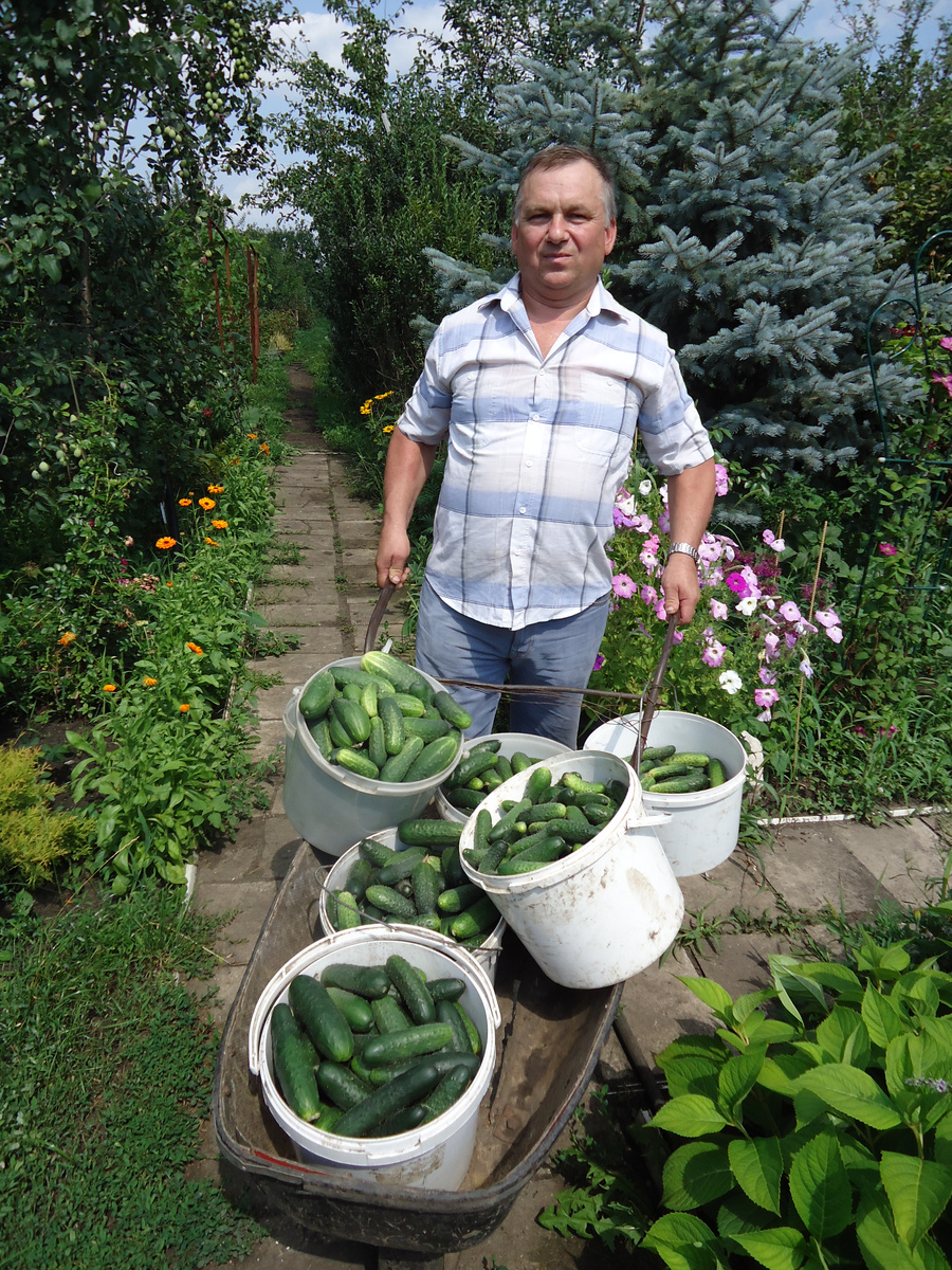 В апреле и мае кто через рассаду, кто посевом сразу в грунт, огурцы посеяли и посадили. Что-то заморозок убил, что-то вредители съели, потому что не сумели вовремя защитить, думали пронесет. Не пронесло. Но что-то и осталось и уже плодоносит.