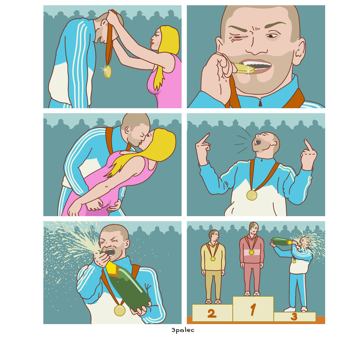 Согласитесь, часто в жизни нам не хватает дерзости, смелости и здорового эгоизма, чтобы повернуть свою жизнь в нужное русло. Мы боимся осуждения общества, стараемся не «выпячиваться» и ждем от других того же. Наверное, именно поэтому наши скрытые желания проявляются в выборе контента. Нам нравится смотреть, как персонажи выходят за рамки нормальности и творят всякую дичь. Все то, что сами мы себе позволить не можем. Именно так действуют герои в комиксах художника под псевдонимом 3palec. Честно говоря, его юмор настолько черен и резок, что многие из его работ я просто не могу показать в этой статье. Боюсь, не пройдут цензуру). Кажется, автор намеренно выбирает именно такие провокационные темы. И, пожалуй, в этом – его фишка. Он шутит за гранью – и этим вызывает восторг читателей. 3palec – художник из России. Почему-то ему очень нравится держать свою личность во флере анонимности, поэтому много информации о нем представить невозможно. Известно только, что сейчас он живет за границей. Ри
