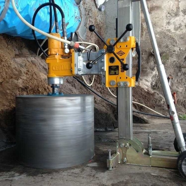 В большинстве случаев устройство отверстий диаметром свыше 400мм возможно только при наличии трехфазного, 380В, питания. При отсутствии трехфазного, 380В, питания необходим либо автономный генератор соответствующей мощности, либо при соблюдении ряда условий устройство отверстий диаметров 400-800мм выполняется гидравлической установкой сверления алмазным инструментом совместно с автономной маслостанцией с приводом от ДВС.