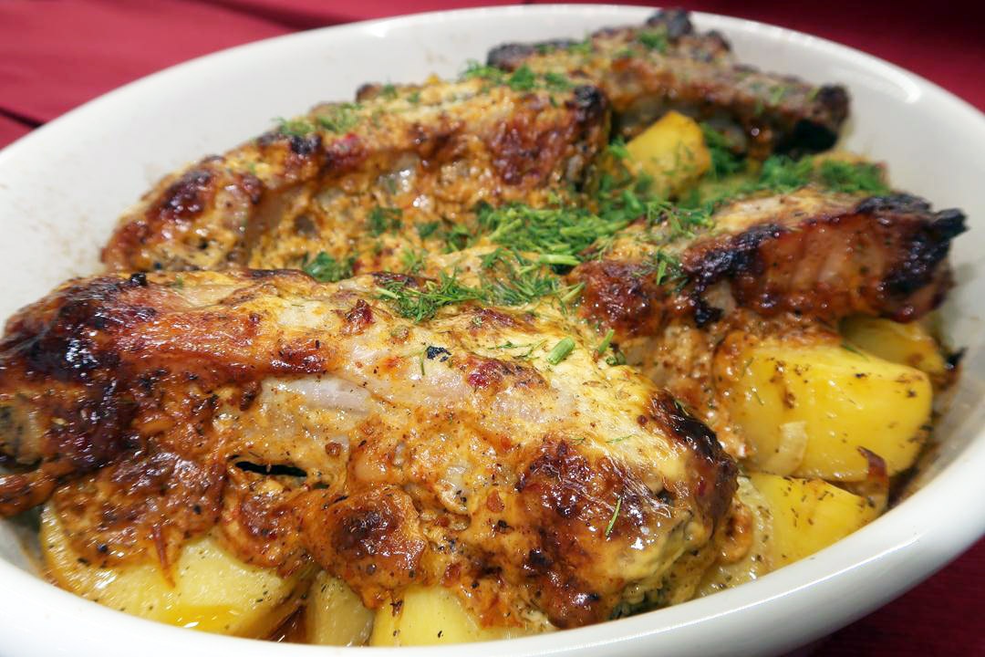 Сочные и очень нежные свиные рёбрышки, запечённые с картофелем в духовке