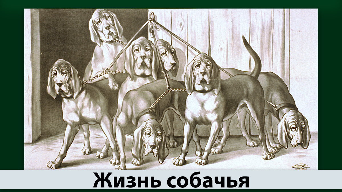 Нам сообщают, что в доме Миткова, на углу Малой Морской и Гороховой, живёт француженка, которая питает сильную страсть к собакам, и держит их 11 шт. Комната, в которой она помещается со своими питомцами, занимает примерно 8 кубических саженей; исключив из этого числа пространство, занимаемое печью и мебелью, мы получим не более 6 кубических саженей.