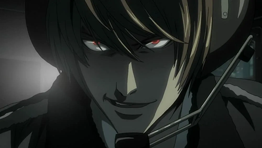 Видимо, это всё из-за того, что на протяжении первой части мы воспринимаем Лайта скорее просто за пацана-максималиста, который придумал себе цель и верно к ней идет.