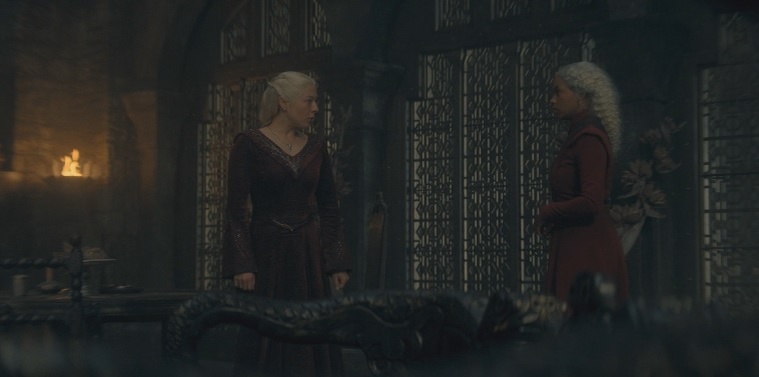 Ощущение, что Рейенира сама тайно топит за «зеленых»: отправила невесту сына под стрелы «скорпионов», чтобы хоть что-то разведать, в то время как у нее в темнице сидит бывший глава тайного сыска Вестероса!